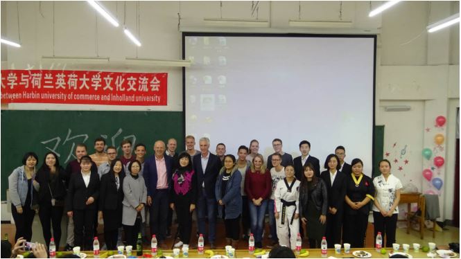 由轻工学院主办的哈尔滨商业大学与荷兰英荷大学文化交流活动和学术研讨会分别于10月26日和27日举行。参加本次活动的有来自英荷大学的三位教师和十三名交流生,轻工学院党委书记潘鹏杰、副院长金向阳、工业工程专业主任马丽心,专任教师兰爽、李丹婷、张影以及轻工学院的学生们。
