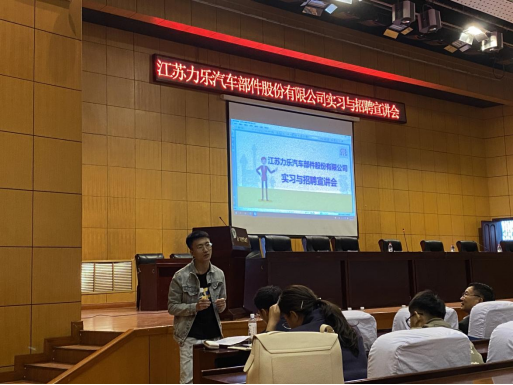 下午15时,在哈尔滨商业大学专家公寓国际会议报告厅举行实习与招聘宣讲会,会议由张铁锋主持。马金保从公司概况、企业文化、员工培养模式、企业目前的发展状况及发展前景等方面与同学们做了详细报告。实习学生代表对在力乐公司的实习情况进行了介绍,他表示实习期间在企业学到了很多知识、开拓了视野、锻炼了能力。接下来的互动环节中,同学们就自己所关心的专业契合度、企业的人才需求、企业发展平台与机会等问题与马金保进行了互动交流,马金保多次强调“选择”对于大学生的重要性,希望同学们都能找到自我实现的价值与目标,并为之而努力奋斗。