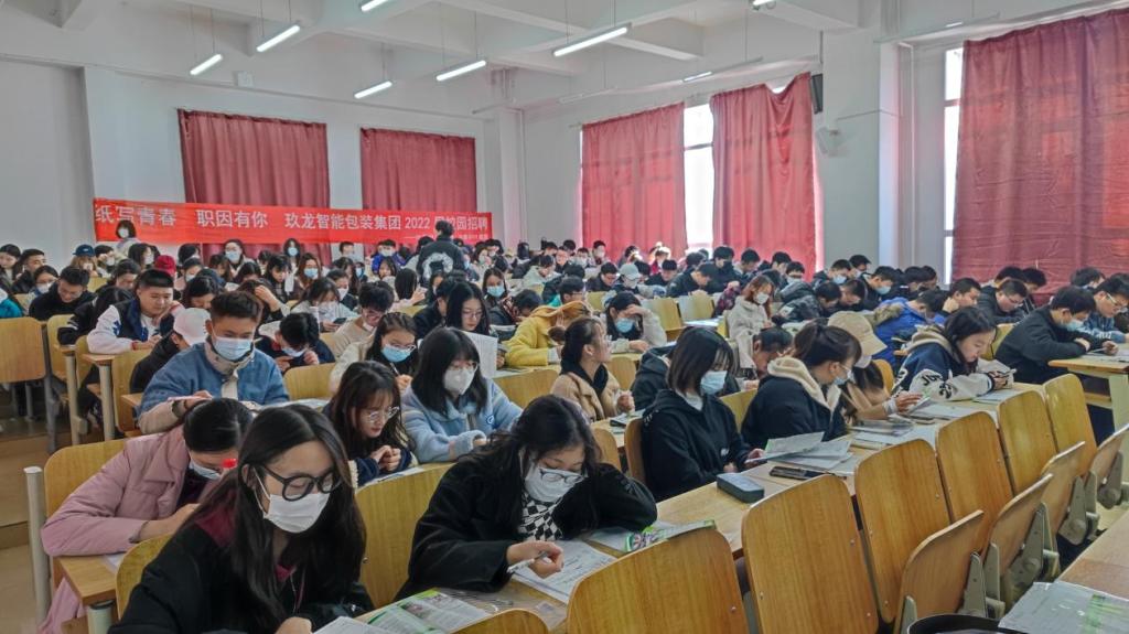 黄海强讲述了玖龙智能包装公司的发展理念、企业规模、薪资待遇以及各个分基地的产能情况,他强调社会公益对于集团的重要性。赵亚强讲述了目前的行业现情,谈到同学们在选择未来的行业和企业需要考虑的具体问题,他介绍了公司的职业发展前景和公司的具体的薪资福利待遇。轻工学院毕业生矫文强为学弟学妹们讲述了自己在集团的发展和成长历程,为即将步入社会的学生们加油打气,希望后浪们可以在未来找到自己的人生方向,努力奋斗。随后,同学们对于企业待遇、工作时长和岗位的晋升通道等具体问题与企业负责人进行交流。