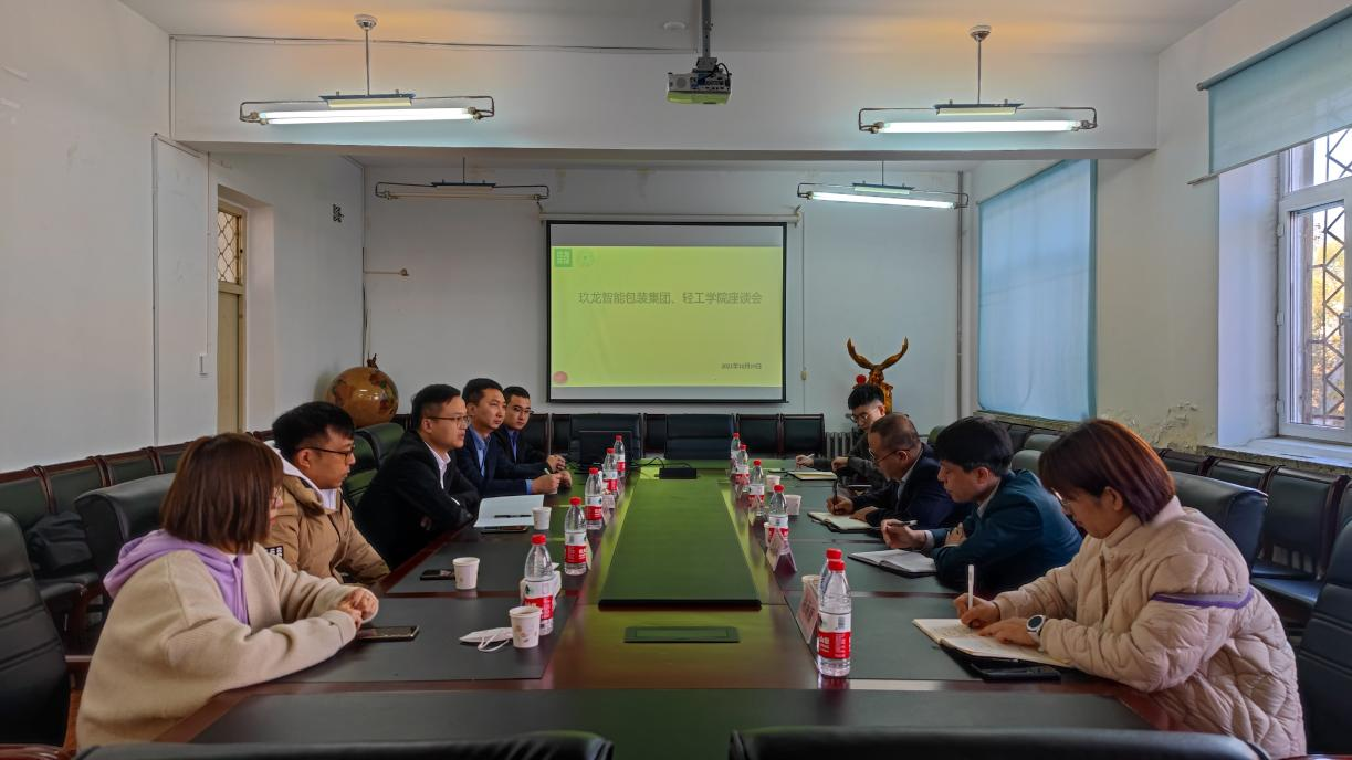 黄海强介绍了玖龙智能包装集团近年来的发展情况与上升趋势,企业方面新成立基地的状况,玖龙集团与我校轻工学院校企合作关系持续利好发展,并谈到企业的发展离不开高校人才的培养与输送。张铁锋从学生角度出发,提到学生的发展不应局限于高校内,尤其是对于理工科大学生,人才培养的目标应与企业和社会发展目标相对接,实现融合型人才的产出。孙振宝介绍了轻工学院的专业发展情况,特别是对口专业—印刷、包装工程专业的良好发展趋势,他谈到高校的人才培养必须符合企业的需求,突出大学生实践能力的提升,希冀未来大力拓宽与玖龙集团的合作方面和通道,实现企业和高校的双赢局面。