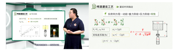 包装工程专业巩雪老师以《包装工艺学》中的重点内容“啤酒灌装工艺”为主题,制作了时长为11分钟的微课。微课首先确定了教学单元的教学目标和教学重难点,将《啤酒灌装工艺》微课的教学目标分成知识目标、能力目标和素质目标,通过课程学习学生能够掌握啤酒灌装工艺的原理、流程和工艺参数确定方法,培养学生利用啤酒灌装工艺理论进行工艺设计的能力和解决复杂包装工程问题的职业素养;其次,在课程教学过程中融入了课程思政元素,引导学生采用科学严谨的态度进行啤酒灌装工艺设计,树立科学精神和法制意识、了解我国啤酒灌装装备的发展历程,激发学生的爱国情怀和专业自豪感。整个教学过程总共分四步走,即问题引入、主要内容讲解、总结和课程延展,《啤酒灌装工艺》微课借助哈尔滨人对啤酒独有的热爱和哈尔滨啤酒节的盛况,结合日常生活中遇到的倒啤酒起沫的实际情况,激发学生对问题的关注和学习兴趣,引导学生思考泡沫产生的原因和对啤酒灌装的影响,以此引入啤酒灌装过程需要解决的实际问题;利用动画、图片和流程图使学生理解啤酒灌装工艺的原理和流程,流程最终要考装备实现,装备的效率和精度决定了包装品的质量,利用流体力学原理,解决啤酒灌装时间的确定方法,最后,提出问题“包装工艺力求高效率和高精度,但却会增加生产装备的成本,如何在解决实际问题的时候如何能够做到鱼与熊掌兼得?”以此引发学生的深入思考,激发学生的学习主动性,提高教学质量。
