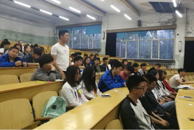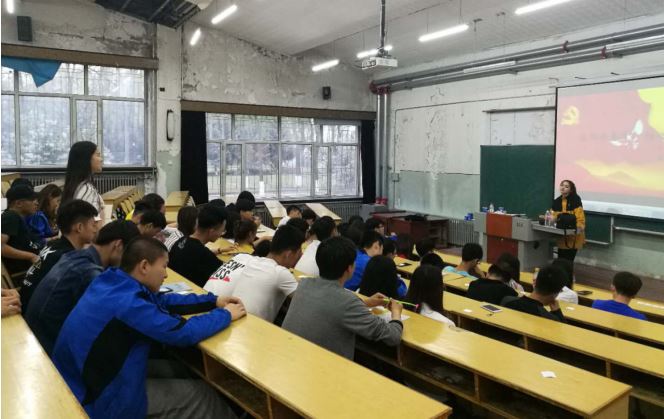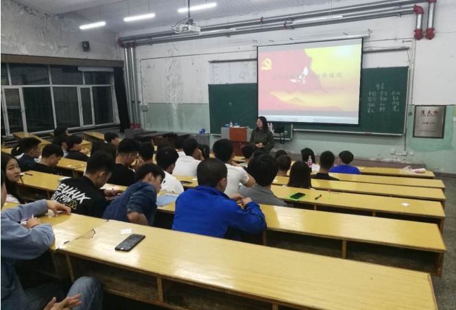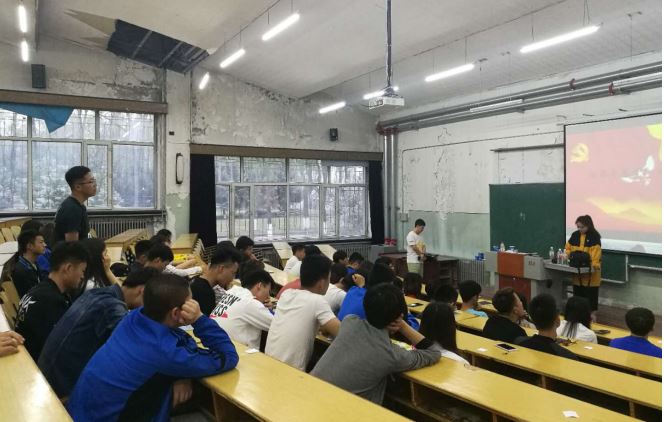 活动最后学生党员一起高声背诵:立鸿鹄志,做奋斗者,知行合一,做实干家,练就真本领,做优秀轻工人!