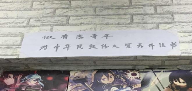 5月13日轻工学院舍务管理委员会与党员之家进行了走寝宣传,每个寝室选择一条习总书记对青年人的寄语,作为寝室成员的精神向导和行为准则,宣传得到各个寝室热烈响应。5月14日各个寝室陆续书写属于自己的特色标语,标语形式多样,积极向上,充满创意!舍务管理委员会的工作人员随机对书写标语的寝室进行了采访,意料之外的是同学们不仅标语书写美观,对标语内容也进行了透彻的解读和阐述!