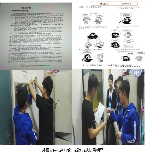为了达到广泛教育的效果,舍管的同学一间一间走进寝室,向同学们普及抵制邪教、辨别邪教和防范邪教的方式方法,以切实保证教育有效果、活动有作用。