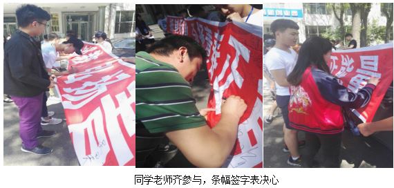 5月27日,学院在C区食堂门口进行了以“抵制邪教,弘扬青春正能量”为主题的“条幅签字”活动,进一步强化抵制邪教的意识与效果。在前期的充分宣传作用之下,老师与同学们积极、热情地参与“条幅签字”活动。在签字活动接近尾声时,同学们交流并讨论了本次活动所获得的一些感悟,表达了自己对本次活动的看法,坚定了抵制邪教的信念。