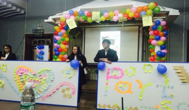 由同学们提前写好的愿望便利贴装扮的“心语心愿板”,选取幸运同学,赢得奖励,说出愿望。 节目之间穿插了互动和游戏环节,使得整个活动高潮叠起。