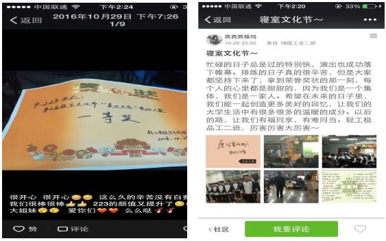 宿舍文化是校园文化的重要组成部分,是思想政治工作进宿舍的有效载体。为此,轻工学院在寝室装扮活动后,又推出了第六届寝室文化节之“寝颂派对”活动。2016年10月29日B区多功能厅里笑语欢声不断,大家在表演中传递正向能量、在游戏中增强团队意识、在评比中强化集体荣誉、在表彰中也体验到付出与收获的因果。
