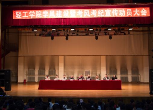 为进一步加强学风建设、严肃考风考纪,轻工学院于2016年12月14日17:00,在B区大礼堂召开了学风建设暨考风考纪宣传动员大会。院长郑大宇、副院长金向阳、晏祖根、党委副书记张铁锋、团委书记任婵媛、教学秘书智慧、各年级辅导员和14、15、16三个年级全体学生出席大会,会议由任婵媛主持。