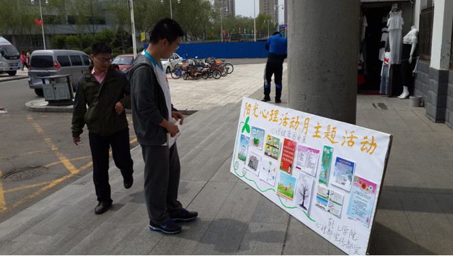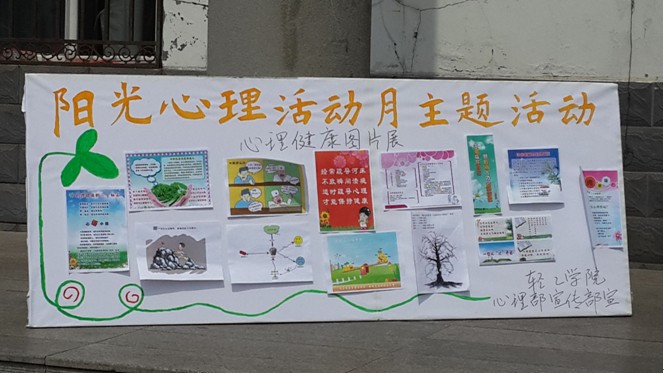 为加强广大学生对心理健康的重视,提高学生心理健康水平,引导学生积极面对生活,我院响应校学工部号召,开展2014年轻工学院“阳光心理”心理健康活动月系列活动。经过前期的策划和准备,5月18日,学生会心理部及宣传部同学在A区展出前期精心挑选、后期精心制作的心理健康图片,面向广大同学普及心理健康知识,也作为我院本次心理健康活动月的启动仪式。