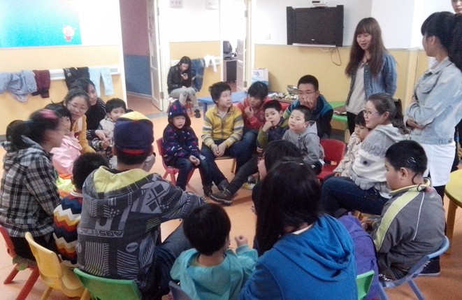 活动过程中,志愿者们与孩子们亲切的沟通交流。为了活跃气氛,志愿者们首先为孩子们演唱了一首歌,拉近了孩子们与志愿者们之间的距离,也让彼此增进了解,提高孩子们对志愿者们的信任感。接着,孩子们主动牵起了哥哥姐姐们的手,开始了亲切地交流,他们眼神的真挚也让每一位志愿者感到欣慰与感动。随后,志愿者们与孩子们围坐在一起进行互动。在志愿者们的鼓励下,孩子们为志愿者们背起了诗歌,唱起了儿歌,大家纷纷拍手称好。分别的时间到了,孩子们与志愿者们拍了一张大合照,此次志愿活动在一片不舍与感动中告一段落。康复中心的负责人对志愿者的到来表示诚挚的感谢,并欢迎同学们下次再来。