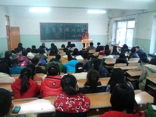 为加强志愿者对志愿服务工作的认识,由轻工学院温暖之旅爱心社主办的2014年度志愿者培训大会于三月九日下午在B区2301教室成功召开。此次志愿者培训大会由松北区助残志愿者学生会副会长陈梦雪主讲,爱心社社长王喆以及爱心社全体成员出席了此次活动。
