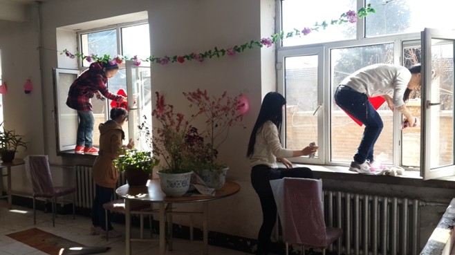 在前往敬老院途中,志愿者们情绪高涨,并对这次活动充满着期待和十足的热情。到达敬老院后,院长亲切的接待了大家,并代表敬老院对前来的志愿者们表达了感谢之情。随后,志愿者们被分成两队,分别承担起清扫食堂和寝室卫生的任务。志愿者们不怕辛苦,努力为老人们营造一个舒适整洁的生活环境,他们用抹布认认真真的擦拭着房间,不放弃任何一个角落,电视柜、衣柜、暖壶,一样没拉下。在打扫房间的同时,志愿者们也没有忘记与老人们交流,嘘寒问暖,与他们愉快的交谈。经过志愿者们近两个小时认真细致的打扫,敬老院屋内的摆设焕然一新,志愿者们的辛苦付出获得了老人们的赞扬与肯定。