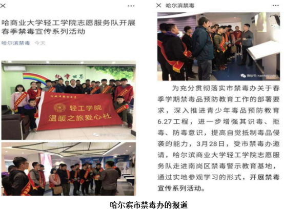 为提高大学生志愿服务意识,增强大学生社会责任感,推进大学生毒品预防教育,提高自觉抵制毒品侵袭的能力,3月28日,轻工学院温暖之旅爱心社的20多名同学和辅导员老师共同走进南岗区禁毒警示教育基地,通过实地参观学习开展禁毒宣传。