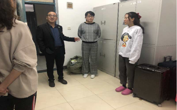 走访过程中,孙书记首先仔细检查宿舍环境卫生及用水用电安全问题,并且对寝室干净整洁的卫生提出了表扬。接着询问了同学们的学习状况,并且勉励同学们要自强自立、勤奋学习,养成良好的学习生活习惯,营造干净、整洁的宿舍环境。同时,为深入了解学生公寓供暖情况,对个别宿舍由于窗户封闭不严、暖气遮挡等原因而导致温度低的情况进行现场协调与督促解决,确保同学们温暖过冬,叮嘱同学们有困难第一时间与老师联系。