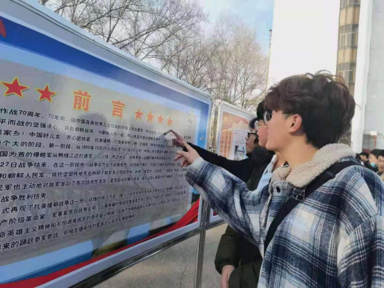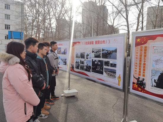 为纪念中国人民志愿军抗美援朝出国作战70周年,结合我校轻工学院“高举红色火炬,共筑强国之盾”军校共建主题教育活动方案要求,轻工学院联合黑龙江省军区警卫勤务队,于11月14日在C区轻工学院门前,举行了《伟大的抗美援朝战争》主题图片展。