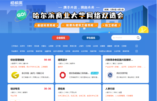 为切实做好毕业生就业工作,确保同学们更加充分更高质量就业,5月8日至6月1日,基础科学学院、轻工学院、能源与建筑工程学院联合梧桐果举办网络双选会。
