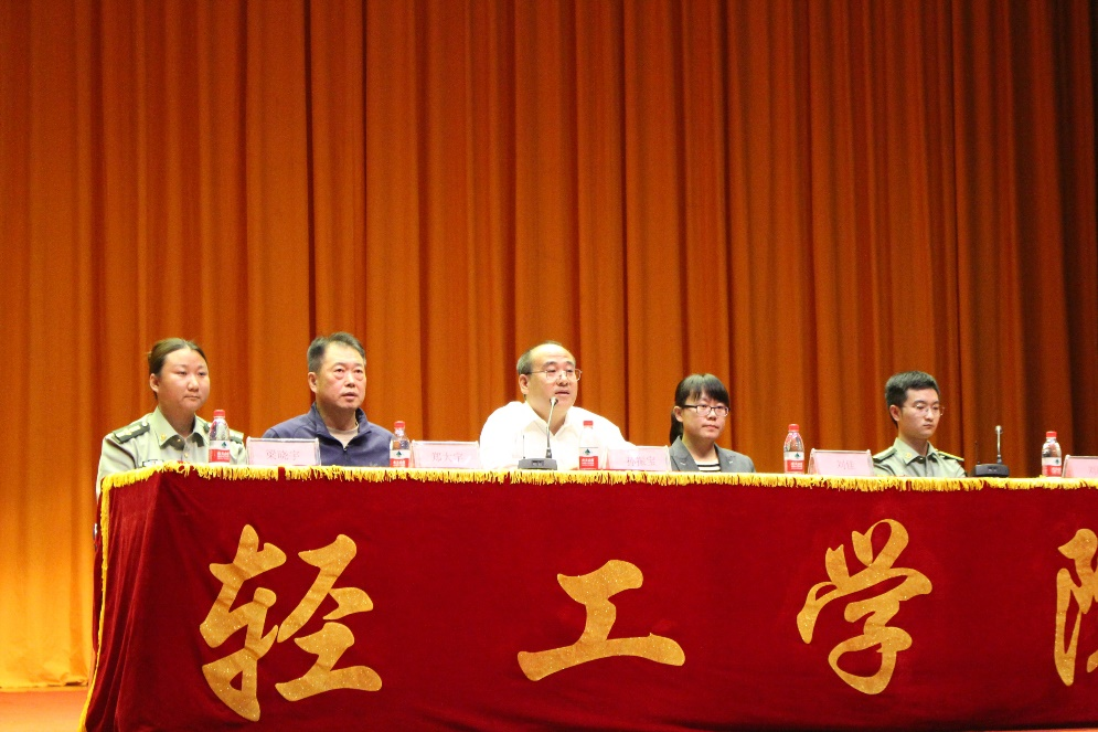 郑院长向大家介绍学校学院发展历程,介绍了轻工学院各专业校友成功的案例,为同学们介绍了很多成功之路,分别从学习和生活中要求同学们,学生学生,最重要的是学,四年期间要学会做人做事学,会独立思考,会选择,自食其力。学习方式:要创新性的学习,要确立好目标,提醒同学们学习要注意学习时间的安排,要克制自己,战胜自己,不能放松,抓住时间。生活方面:做到精神健康,身体健康,与人为善,学会成就别人。