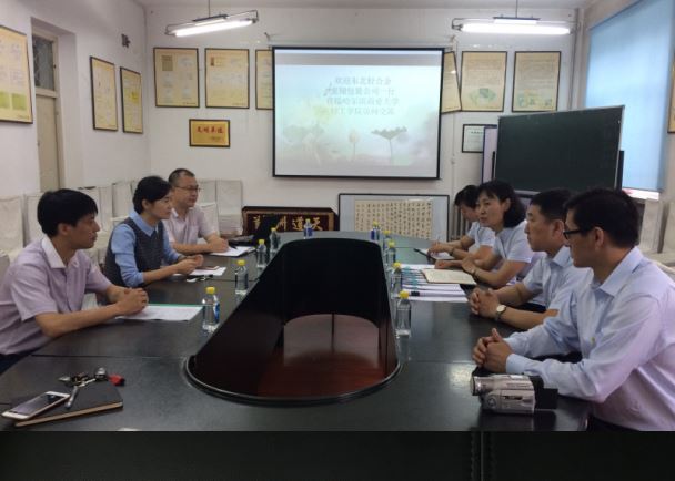 轻工学院党委书记潘鹏杰、副书记张铁锋、纪检委员金向阳、包装教研室主任谷吉海参加了交流活动。潘鹏杰书记首先对龙翔公司一行的到来表示欢迎,对公司一直以来给予的支持和帮助表达了感谢,对校企合作的前景和互利双赢效果进行了展望;张峰副书记说明了此行的目的,介绍了龙翔公司在党建工作中的成绩和做法,表达了与大学在党建工作方面开展合作的设想。