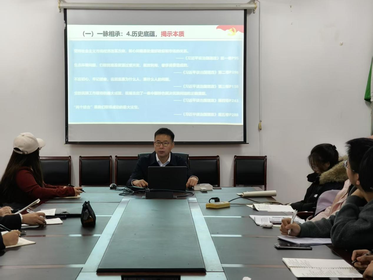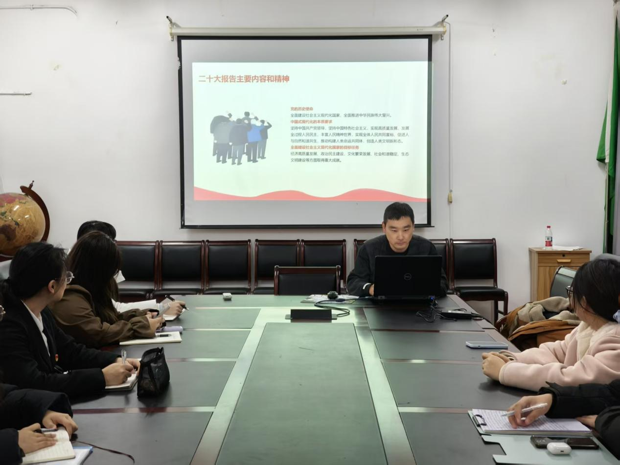 11月21日,硕士研究生党支部书记许威为学生党员系统解读了党的二十大及二十届系列全会精神,深析中国式现代化本质要求与目标任务等核心要义,立足理论渊源与时代方位,紧扣专业学习与大学生成长,引领学生党员坚定理想信念、锤炼过硬本领,在践行使命担当中实现人生价值。