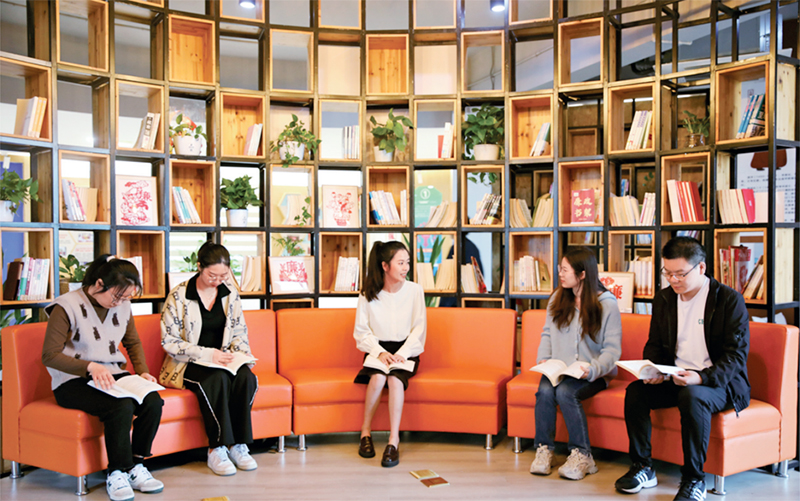 图为2024年2月,浙江省台州市天台县平桥镇的年轻党员围绕学习习近平总书记关于党的自我革命的重要思想,在“清廉书吧”开展“赤心谈”研讨活动,谈感悟、话体会。 全国党建研究会供图